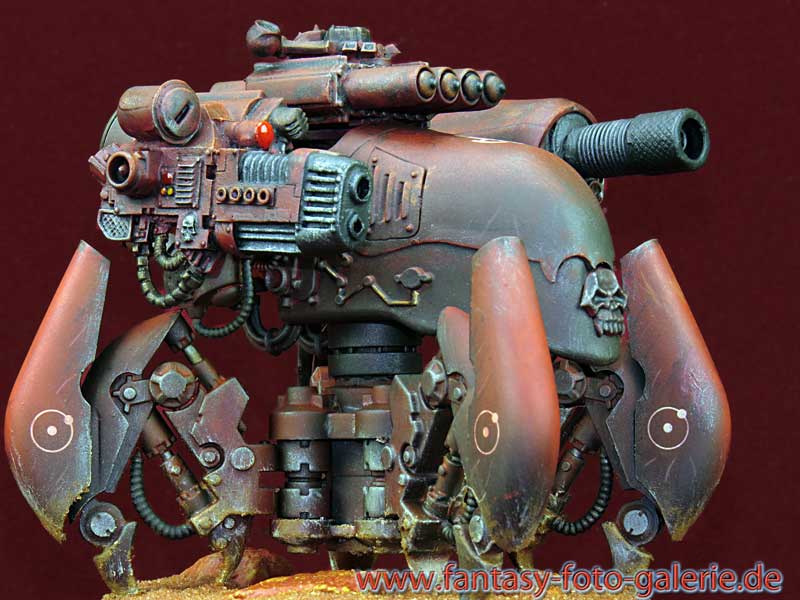 Eine Cybot-Plasmakanone von GW , ein Fahrradventil für die Mikrowellenkanone und die Raketen sind von AT 43, Red Blok. Noch ein paar Kleinteile, fertig !!!